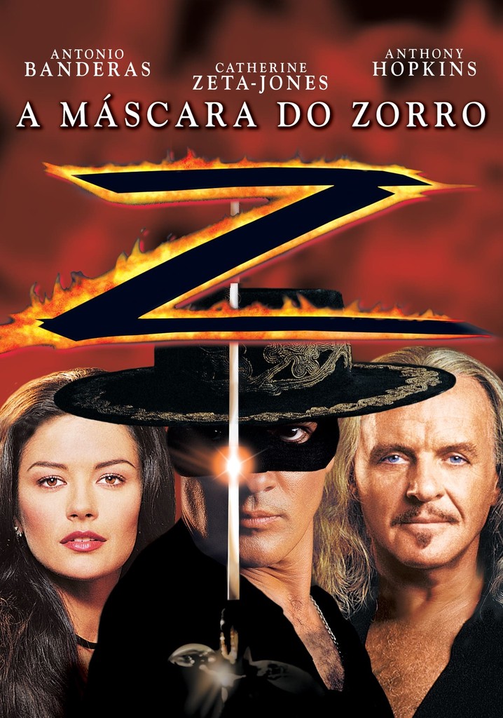 A Máscara do Zorro é um filme dirigido por Martin Campbell com Anthony Hopkins, Antonio Banderas. Sinopse: Depois que sua esposa é assassinada e sua filha levada por seu maior inimigo, Don.