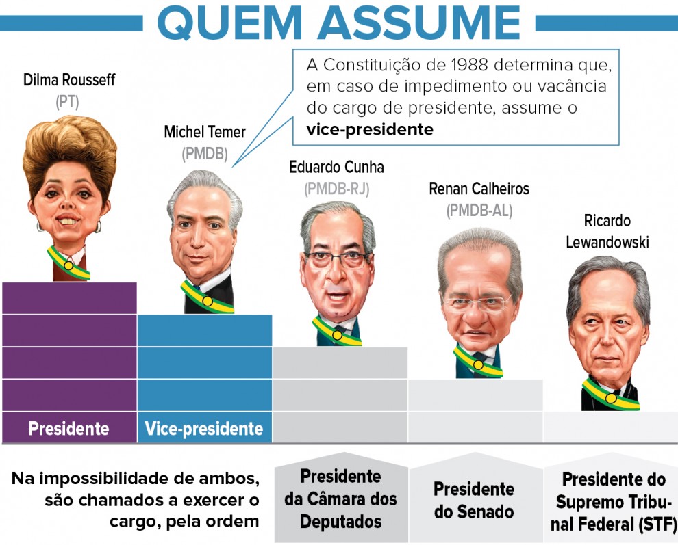 Porém, na ausência dos dois, como em ocasiões que eles viajam juntos para fora do país, por exemplo, outras pessoas podem assumir. O segundo na linha sucessória da Presidência do República.