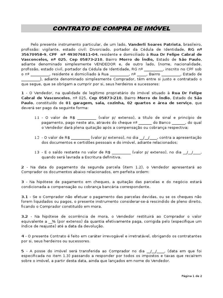 Modelo Contrato De Compra E Venda De Casa Vários Modelos