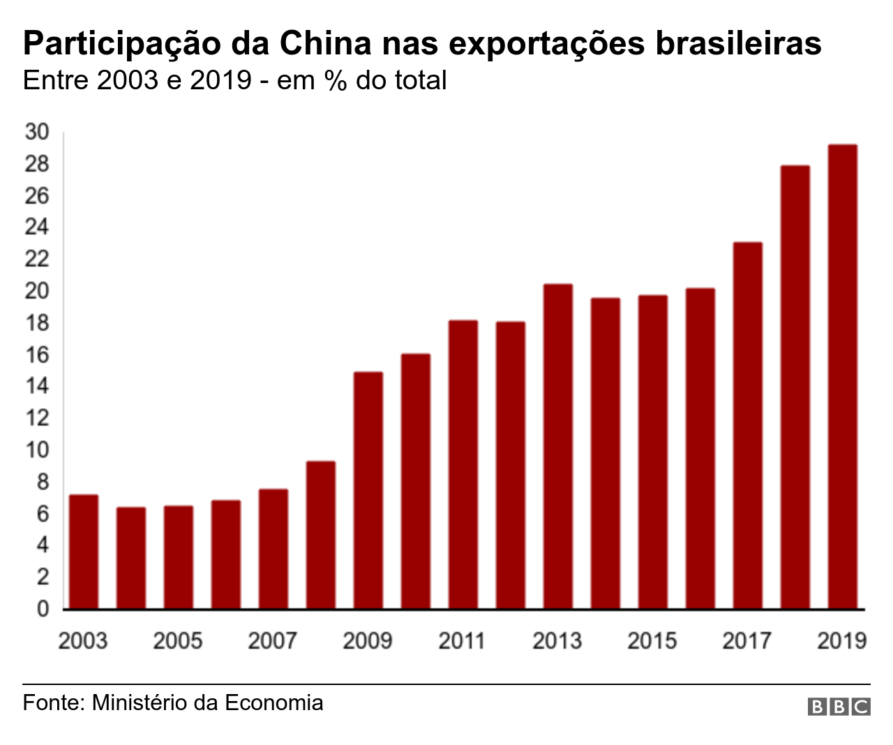 Em 2009, a China tornou-se o maior parceiro comercial do Brasil, ultrapassando de uma vez tanto a Argentina como os Estados Unidos. Em 2019, a China respondia por mais de 65% de todo o saldo.