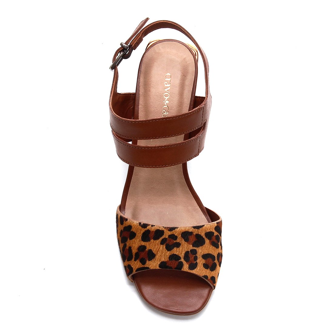 Sandália Couro Cravo e Canela Salto Grosso Cromado Animal Print Onça Feminina Caramelo Zattini