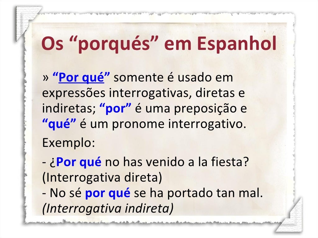 Os porquês no Espanhol porqué, porque, por qué e por que